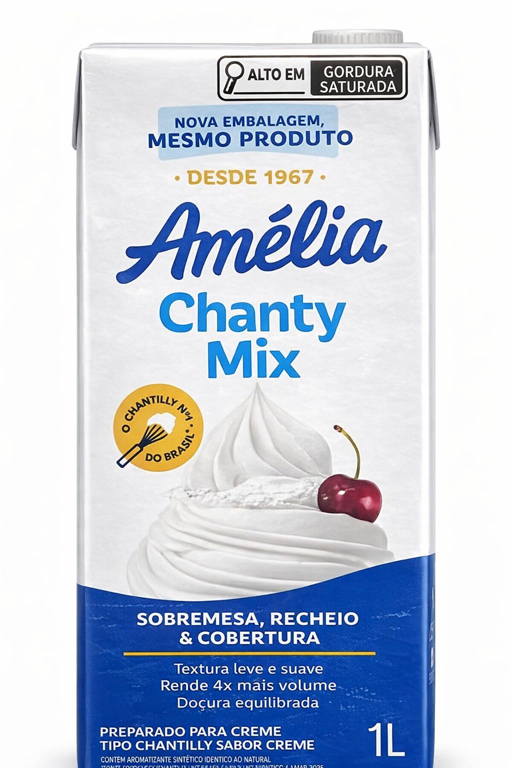 O Chantilly Chanty Mix Amélia 1L é um creme tipo chantilly ideal para recheios, coberturas e decorações de bolos, tortas e sobremesas. Possui textura cremosa, sabor suave e excelente estabilidade, garantindo um acabamento bonito e profissional nas receitas.