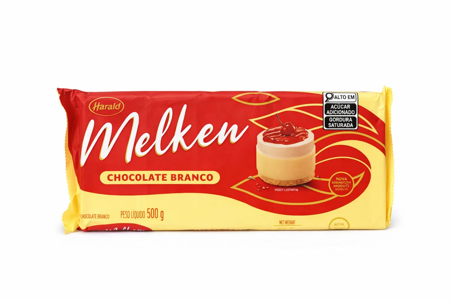Barra de chocolate branco da linha Melken, produzida pela Harald, ideal tanto para uso caseiro quanto profissional em confeitaria. Esse chocolate oferece sabor doce e cremoso, com textura suave e fácil derretimento, sendo ótimo para receitas diversas ou para consumo puro